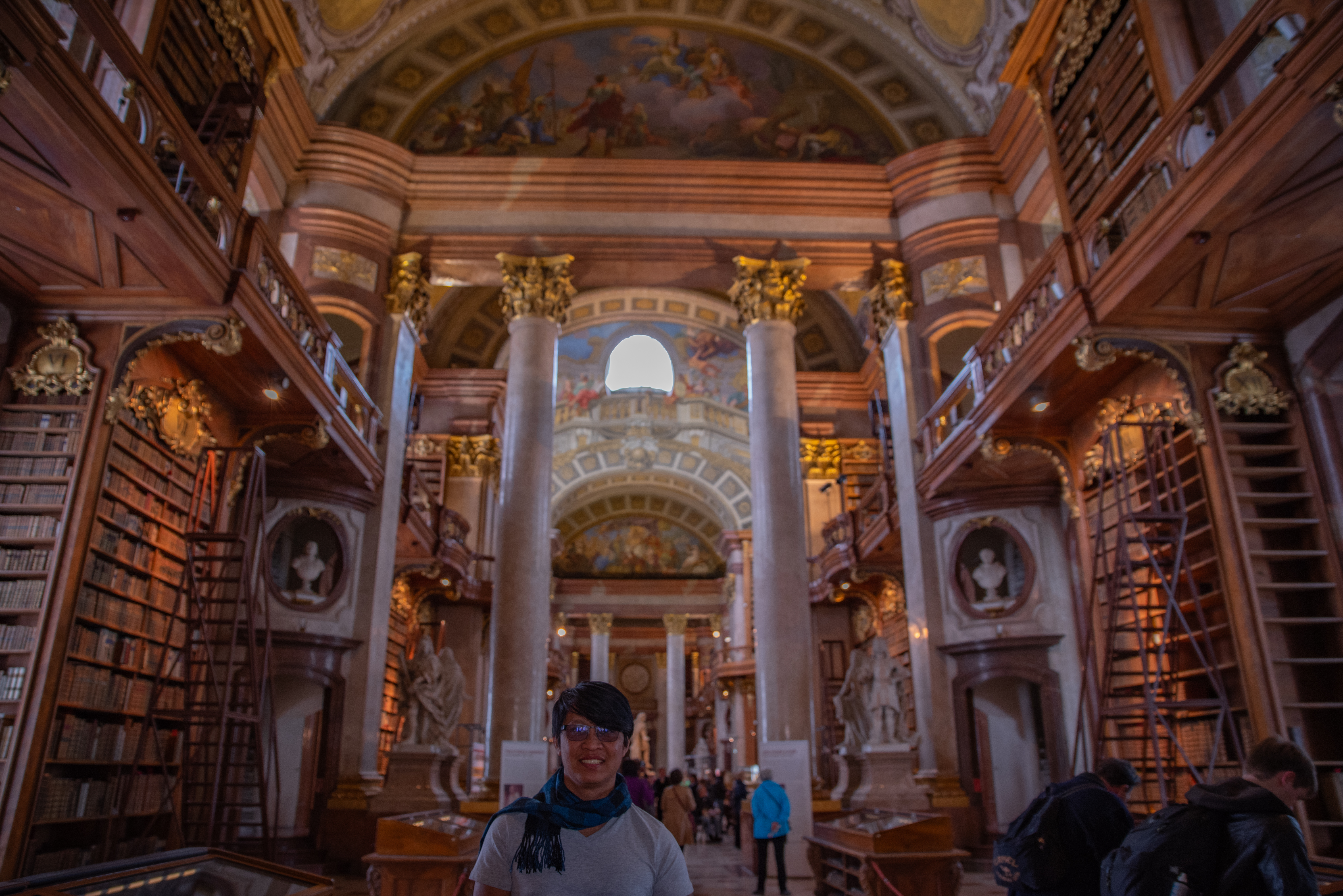 We planned our day around visiting the Austrian National Library, a place I’d seen only in photographs and dreams. As we stepped into the grand hall of the State Hall, the sight took my breath away. Towering bookshelves spiraled up toward a painted ceiling that seemed to move with light and color. A soft echo whispered through the cavernous room, almost as if the books themselves were welcoming us.